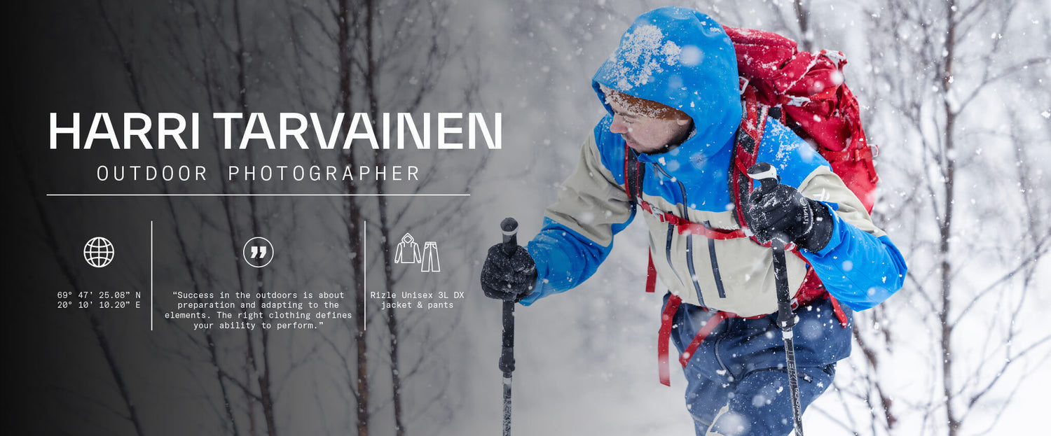 Harri Tarvainen ist Outdoor-Fotograf, Art Director und Halti-Markenbotschafter mit Sitz in Oulu, Nordfinnland. In den extremen Bedingungen des Nordens hat er im vergangenen Jahr Haltis kommende Outdoor- und Skikollektionen getestet.