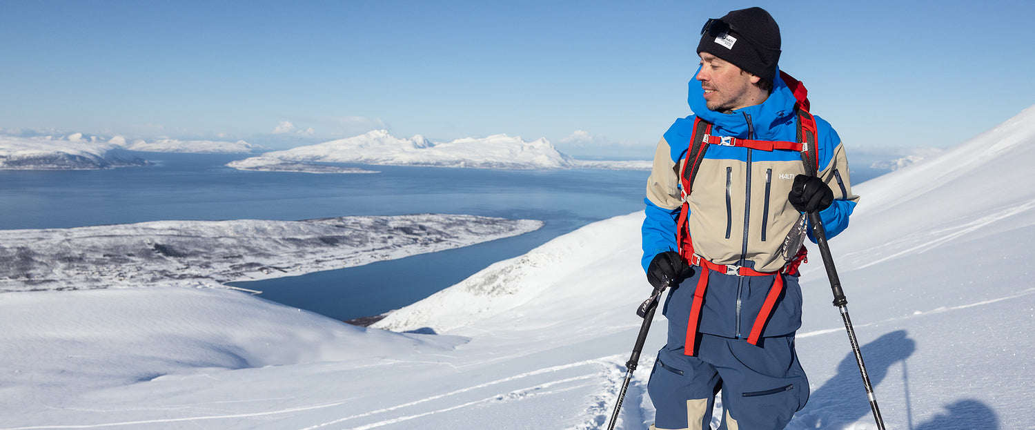 Letzte Saison machte Harri zwei Skitourenreisen nach Lyngen, Norwegen, mit der neuen Halti Rizle 3L-Jacke und -Hose. An acht Skitagen kam er auf rund 60 Teststunden.