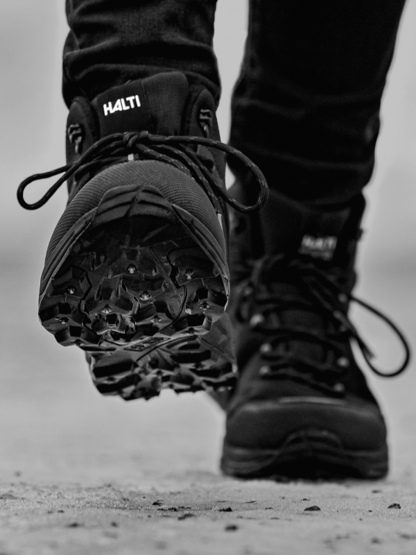 Halti Schuhe sind mit griffigen, langlebigen Außensohlen ausgestattet, die Stabilität auf unterschiedlichen Untergründen bieten – von Waldwegen bis zu rutschigen Bedingungen. Die Sohlen sind auf Traktion, Haltbarkeit und Komfort ausgelegt.