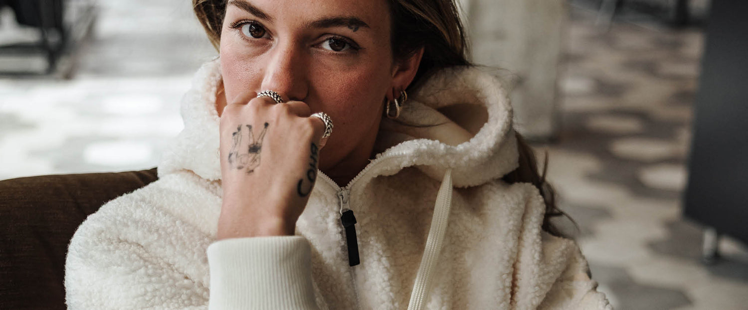 Ich freue mich darauf, die Kleider auf den Straßen zu sehen, gemischt, aufeinander abgestimmt und auf alle erdenklichen Arten geschichtet. Vor allem hoffe ich, dass du dich warm fühlst, wenn du sie trägst. Besonders wichtig ist,, dass sie alle aus recycelten Materialien hergestellt sind und lange in deinem Kleiderschrank auf dich warten können.“