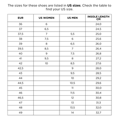 Die Hiker Kuru-Schuhe sind in US-Größen erhältlich. Bitte schaue in die Größentabelle, um deine entsprechende US-Größe zu finden.