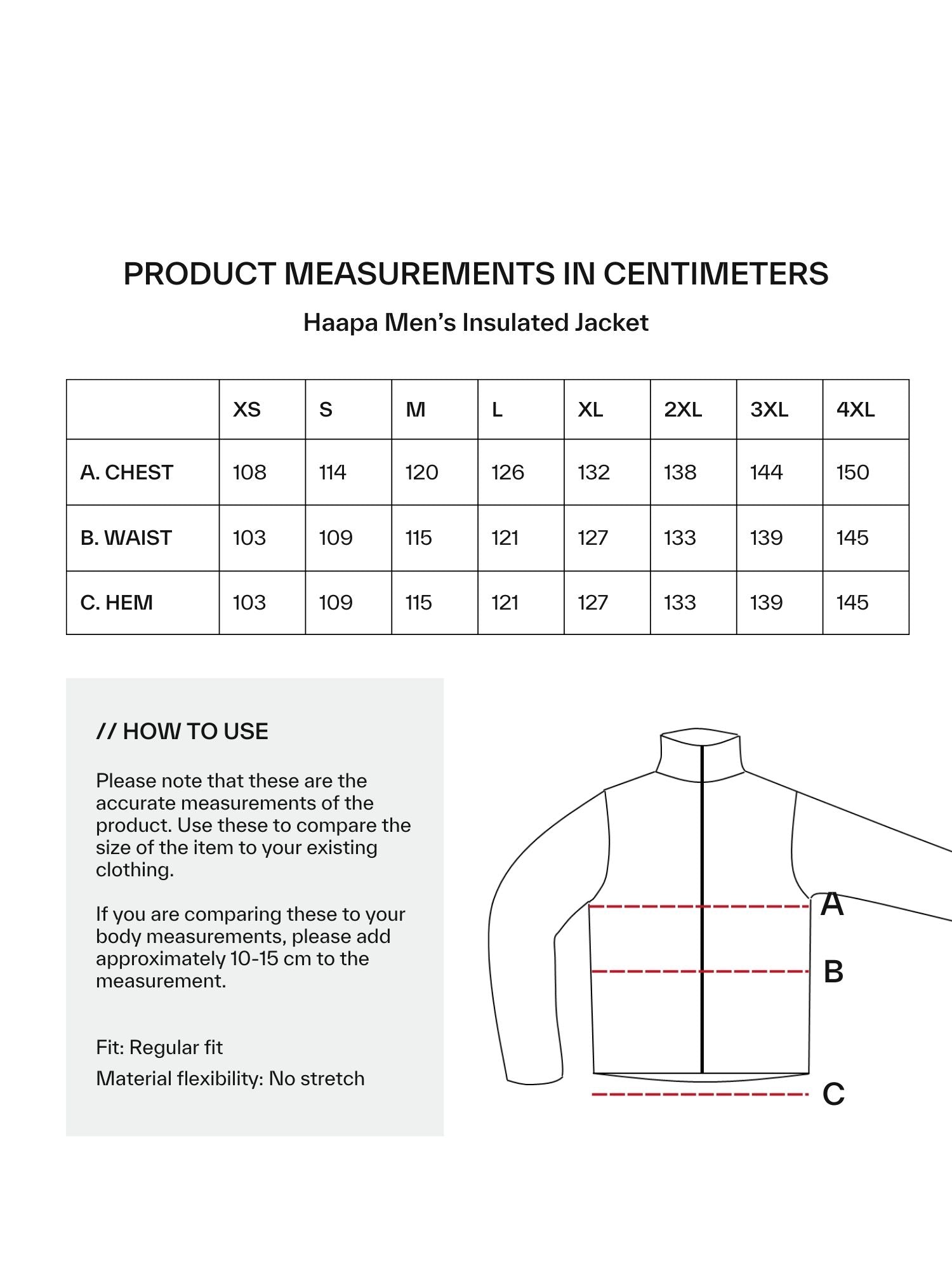 Am besten vergleichst du die Maße mit einem ähnlichen Teil, das dir gut passt.