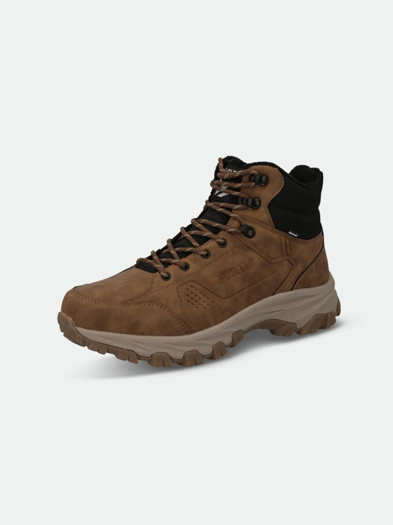 Halti Kevo 2 DX Winterstiefel Herren, braun mit schwarzen Akzenten, robuste Sohle, Schnürung vorne auf hellem Grund.